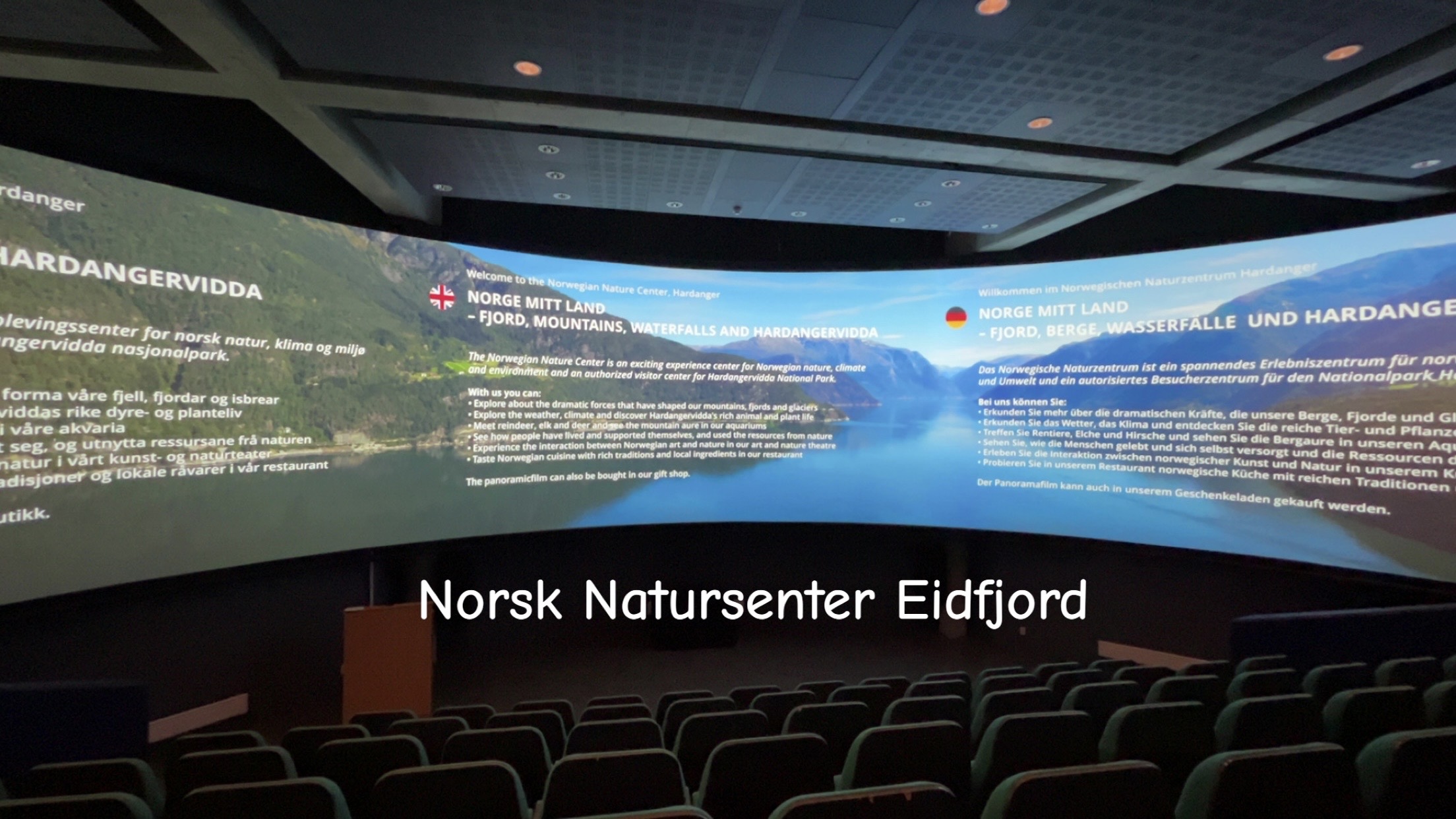 Me reiste vidare til Eidfjord etter dette, der dei fekk omvising på Norsk Natursenter - dei var over seg av begeistring for naturfilmen som vart vist på 180 graders lerret.